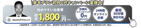AGAヘアクリニックでは、治療費の月額料金を1,800〜31,000円(税込)としています。