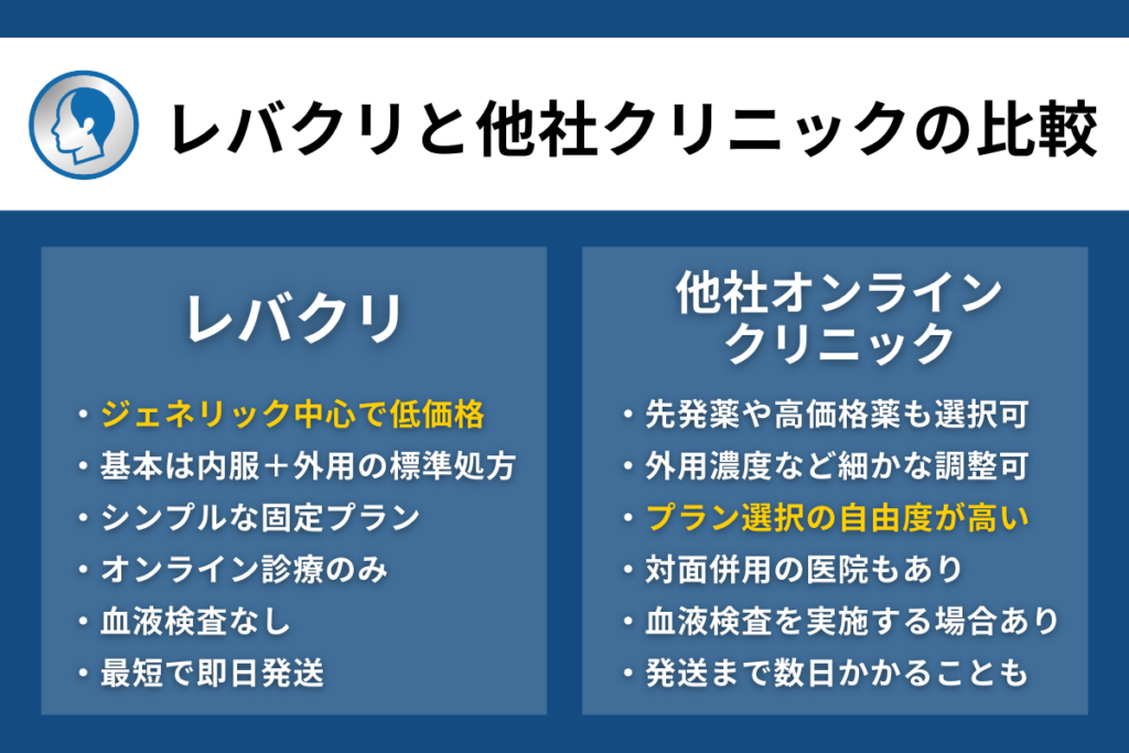 レバクリAGA治療と他社オンラインクリニックを比較